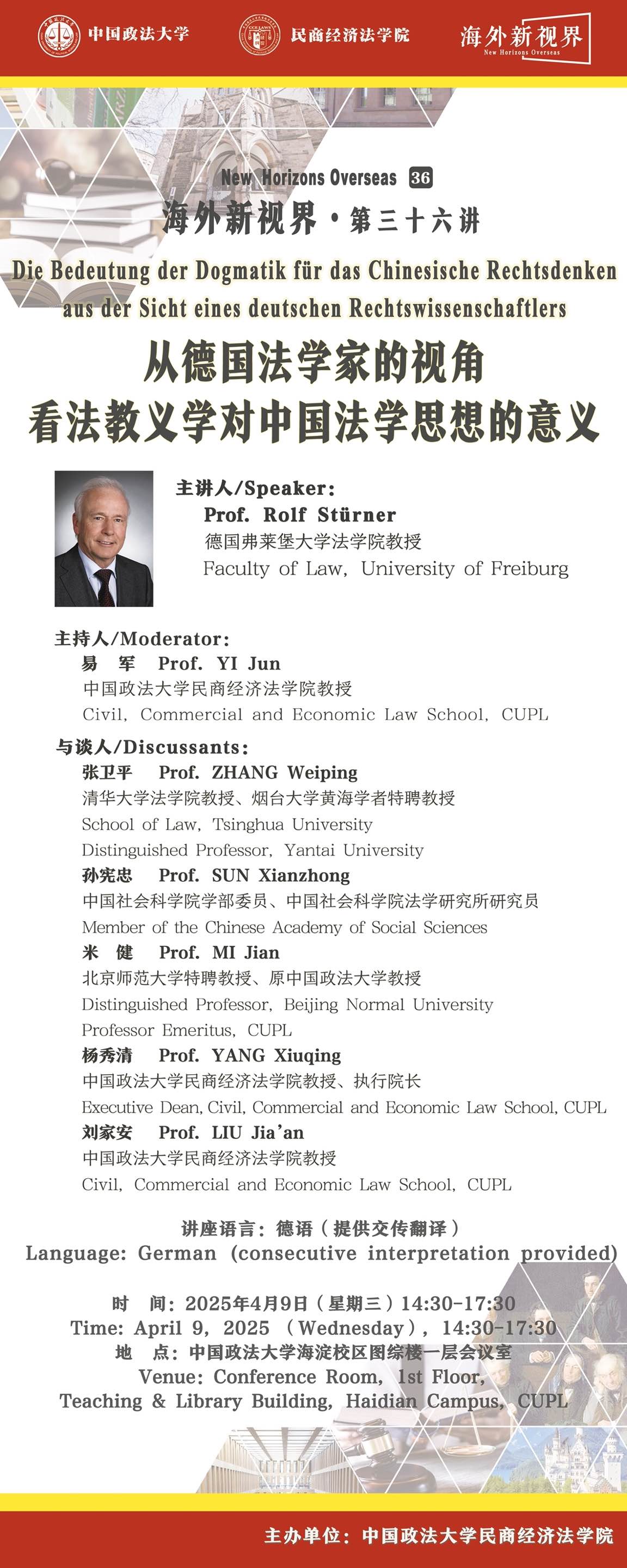 Rolf Stürner, born in 1943, is a professor at the University of Freiburg, Germany, and has been invited multiple times as a visiting professor at Harvard University and New York University. From 1981 to 2008, he also served as a judge at the Stuttgart Regional Court and the Higher Regional Court of Karlsruhe. Professor Stürner has long been a co-editor of two authoritative German legal journals, “Juristenzeitung” (JZ) and “Zeitschrift für Zivilprozess” (ZZP), and has contributed to the commentary on the German Civil Code. His academic works have been published in German, English, and French, with some translated into Chinese, Japanese, Spanish, Portuguese, and several other languages, such as “Sachenrecht” and “Zwangsvollstreckungsrecht”, which have been translated into Chinese.