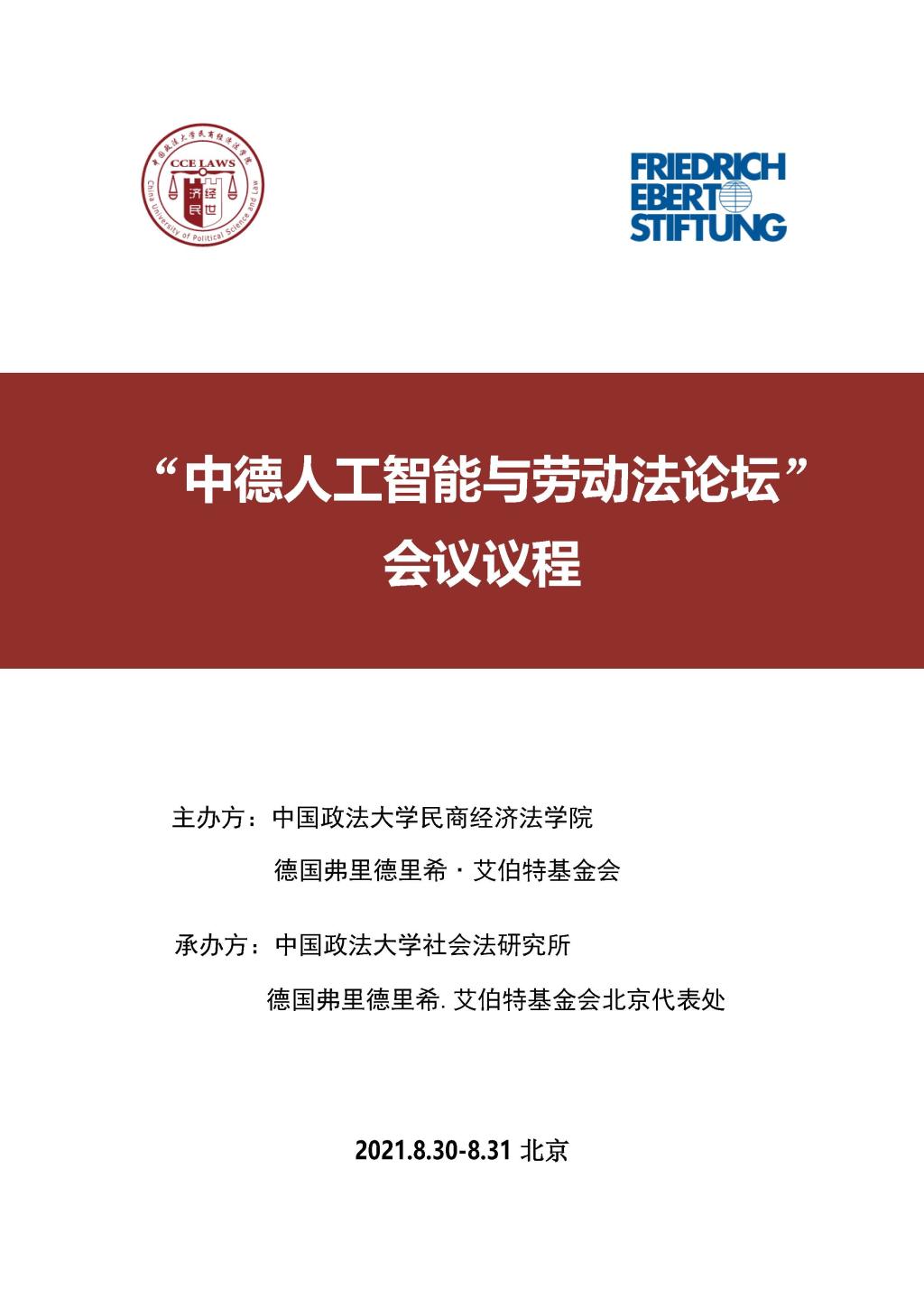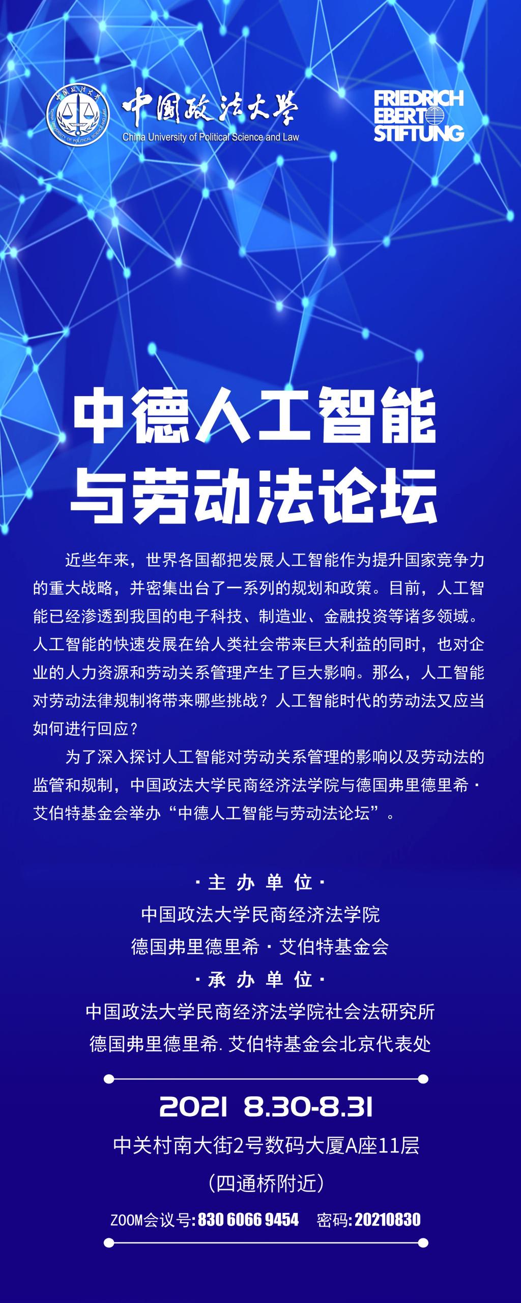 【国际研讨会预告】 "中德人工智能与劳动法论坛"(8.30-8.31,线上+线下)