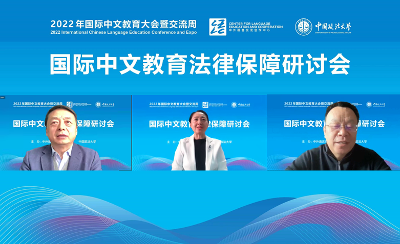 党委书记杨秀清先后就“国际中文教育人才培养体系的制度保障”和“国际中文教育机构海外财产的法律保障”发表了见解。
