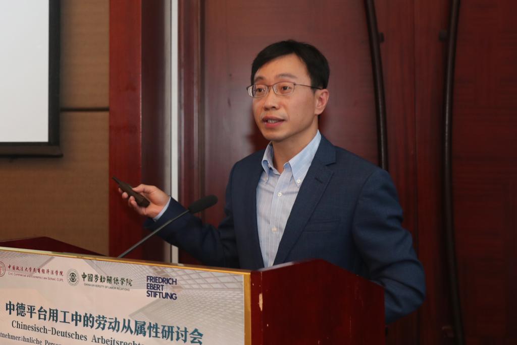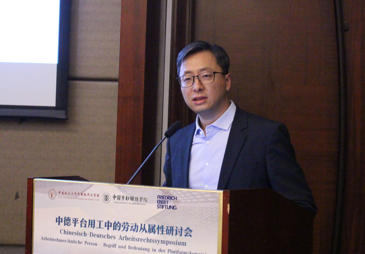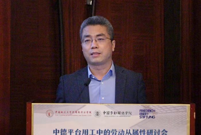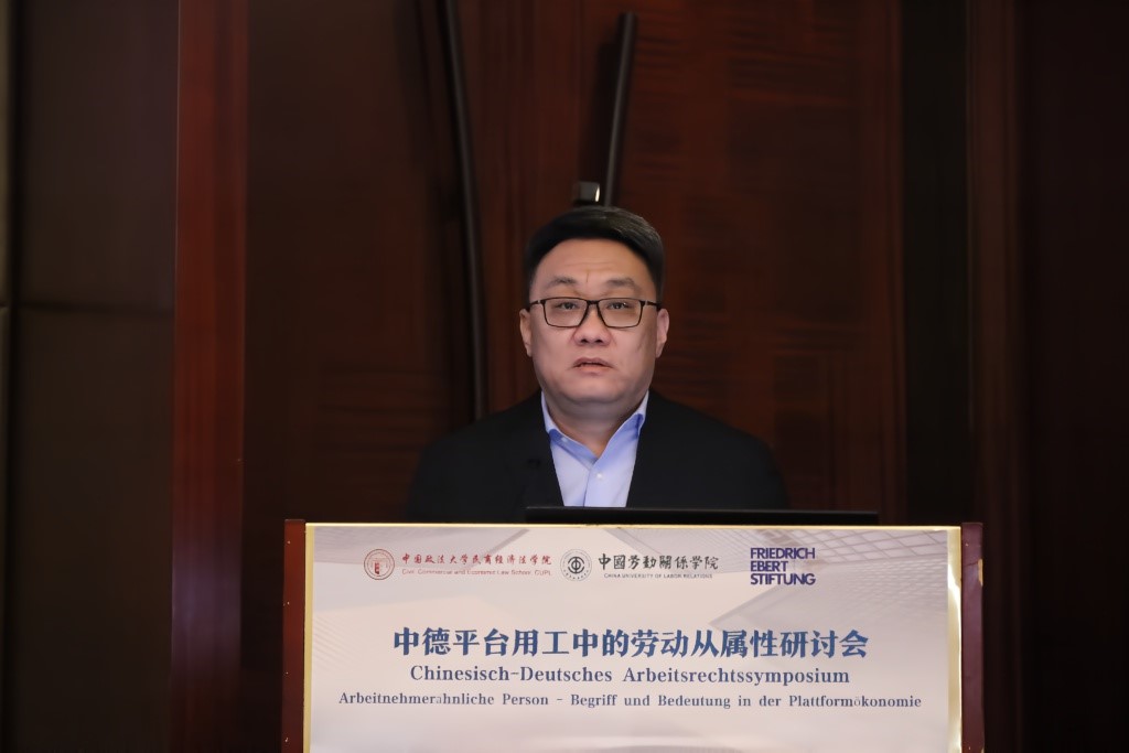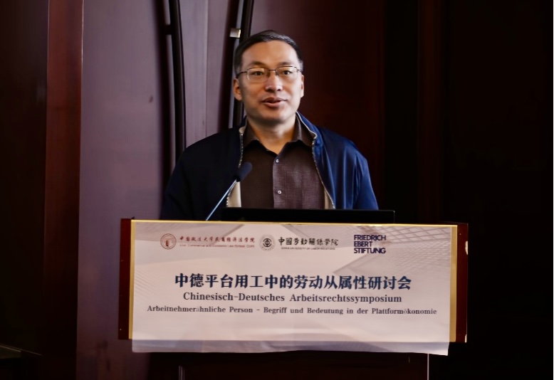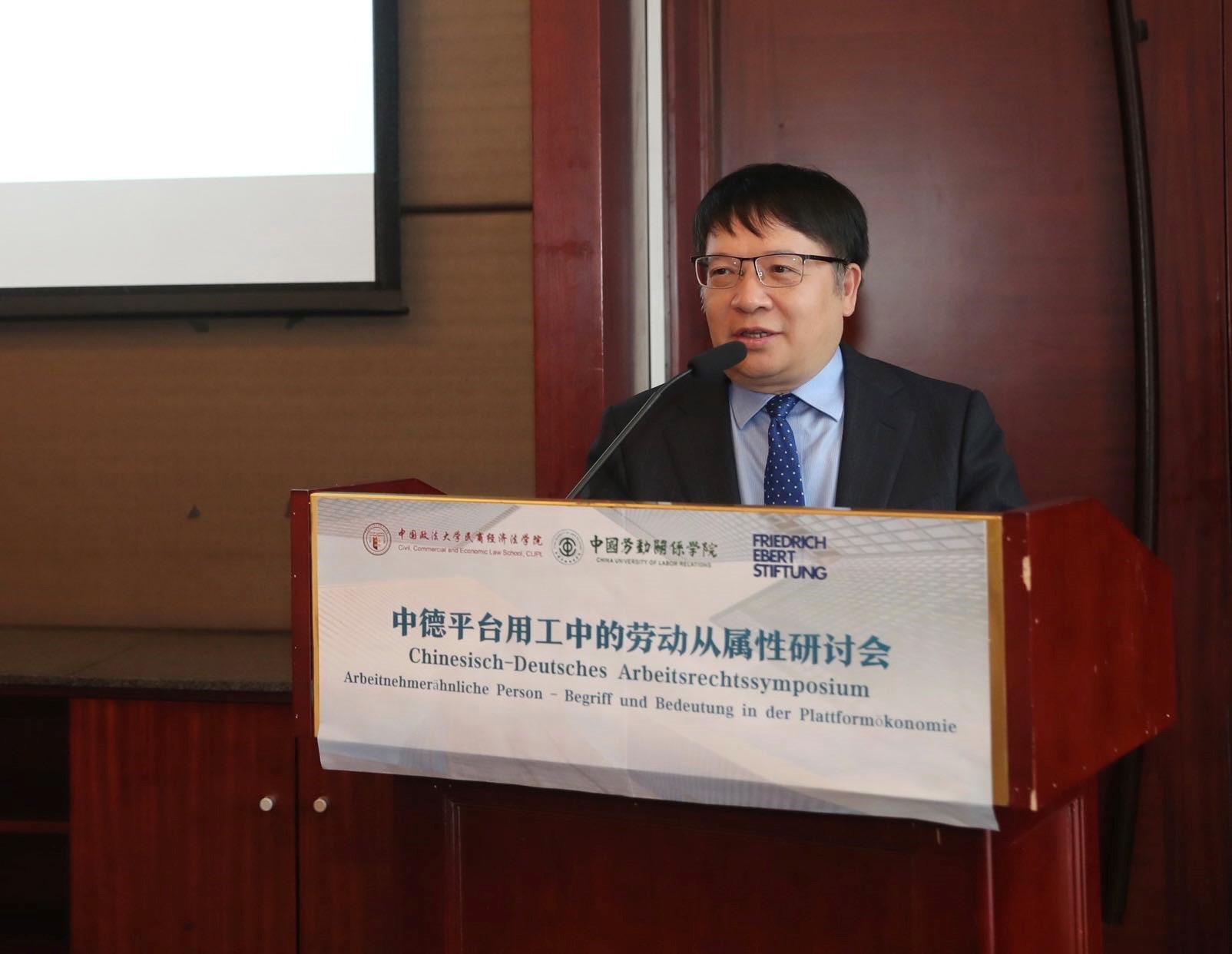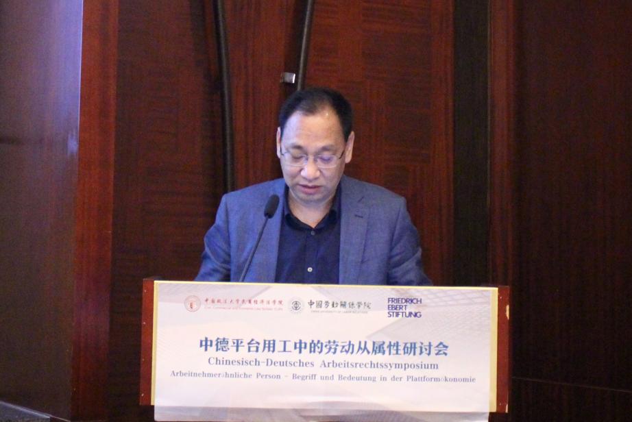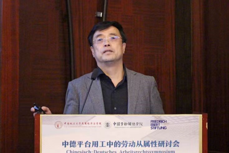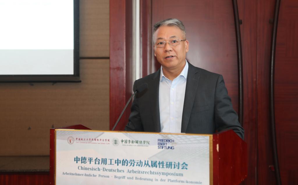 中国劳动关系学院党委副书记、纪委书记、工会主席刘路刚对本次研讨会的召开表示祝贺。他在致辞中指出,新业态下的劳动关系面临许多新的机遇和挑战,本次研讨会以中德平台用工中的劳动从属性为主题正当其时。他希望各位与会专家能够形成更多思路,达成更多共识,提出更多方案,共同推动这一重大理论和实践问题的解决。