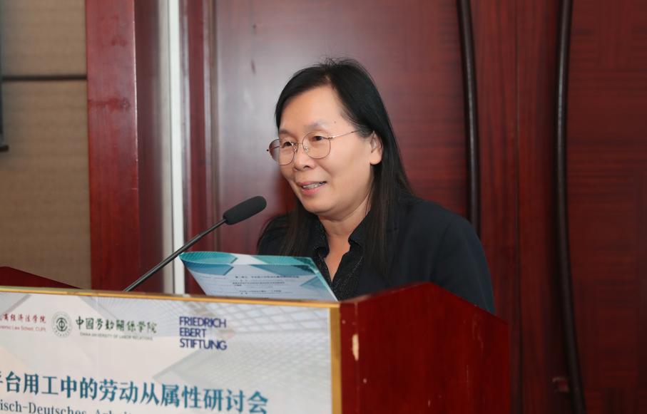 第一单元“平台用工对劳动从属性理论的挑战”由北京大学校务委员会副主任、法学院教授、中国社会法研究会副会长兼秘书长叶静漪主持。